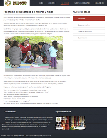 Las coordinadoras del proyecto necesitaban un sitio donde poder difundir las actividades y programas que lleva a cabo la AC, tanto para ofrecer informados a los donadores como para recaudar fondos y promover los productos de la comunidad.